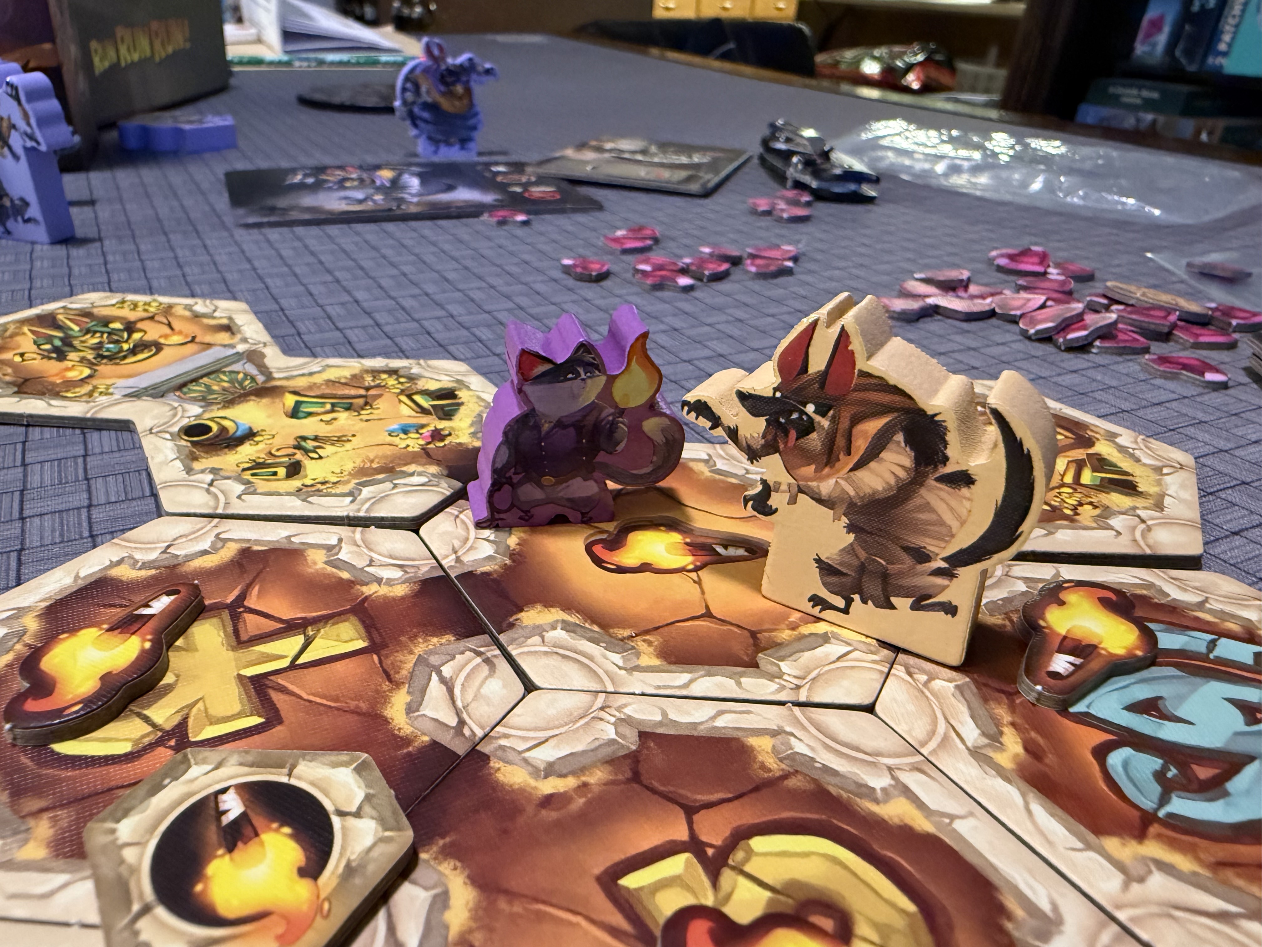 Logbook: I love the adventurous theme of this game. And then add cats? Count me in. I’ve played this solo and as a group, and neither time has disappointed me. There was so much excitement and suspense once the Mummies started coming onto the tiles. Every time the Mummy dice rolled, it was suspenseful to see if new Mummies would enter the board or remain held off. During combat, each dice roll had everyone holding their breath to see how many hits were dealt to the Mummy. I love the game’s puzzle tile laying aspect and figuring out which tiles will fit best as the maze continues to grow. “Run Run Run” is a delightful game for my family. I knew it was a hit when my son asked, “Can we play that again?”