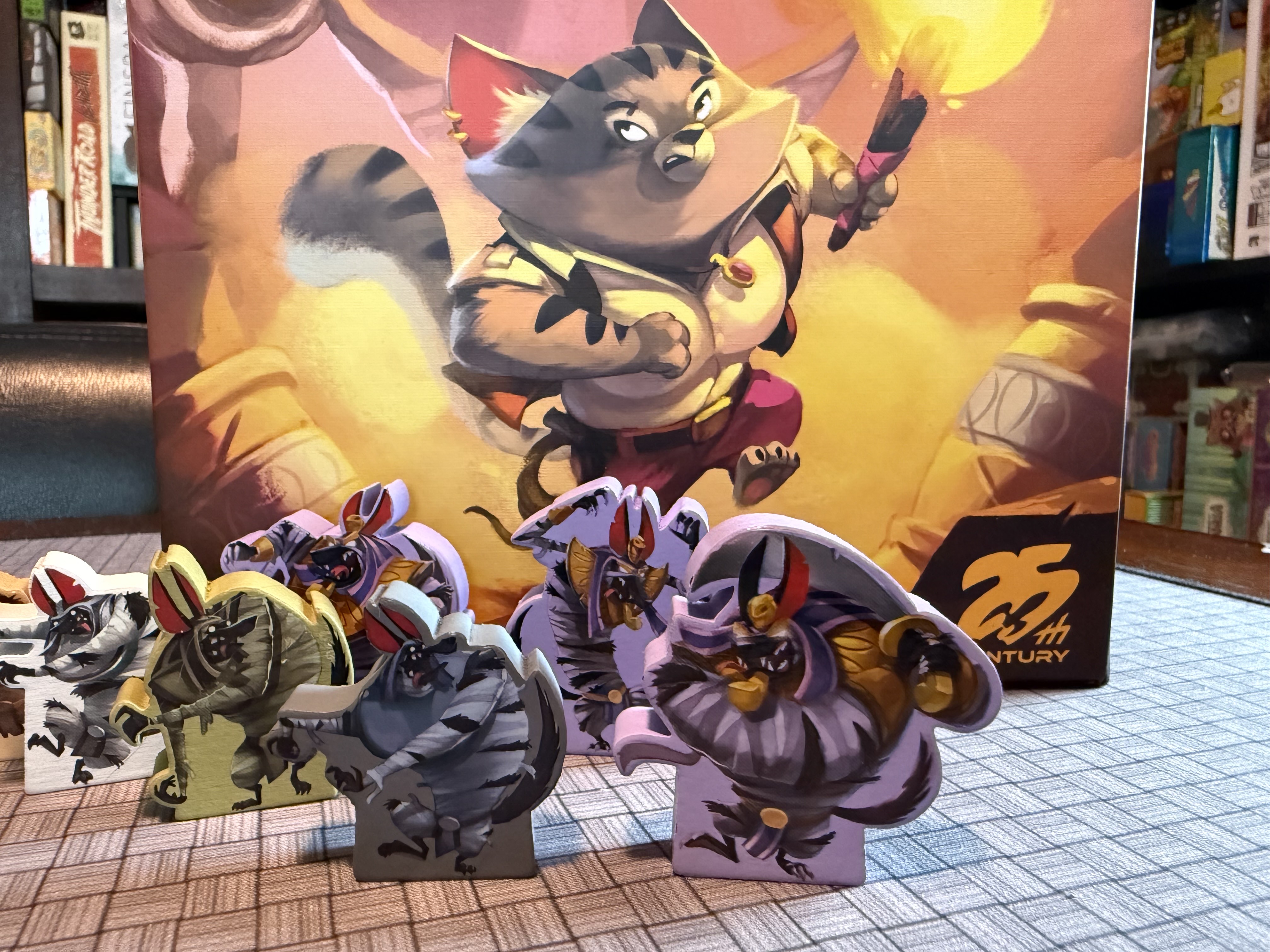 Game Overview: In Run Run Run!, by 25th Century Games, players are Catventurers exploring an Egyptian pyramid and discovering the Ancient Relics of Tutankhanine. (Yes, you read that correctly, Tutankhanine!) You are about to find out… are the legends true? Is it really cursed? As you continue to explore, the Pharaoh’s sarcophagus triggers, and you are detected! Powerful mummies are chasing after you! To escape, you must RUN, RUN, RUN!