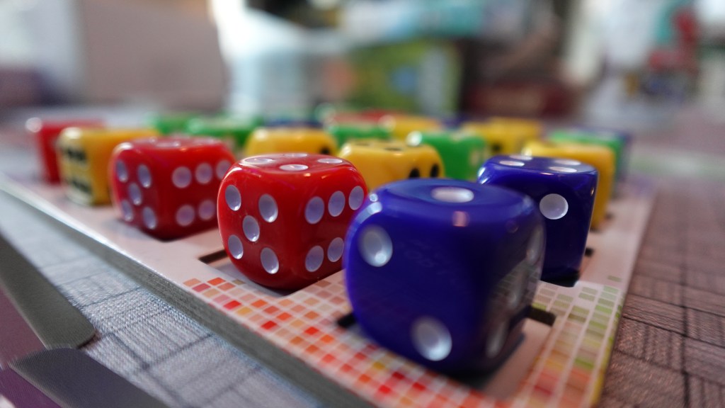 The Journey’s Feel: Five by Five is a delightful way to bring anyone to the game table. There’s a pleasant balance between focusing on your own objectives for points and enough tension created as your opponents change the dice. The more dice fill the board, the more patterns you can make, and conversely, the more ways to have your objectives derailed by a competitor. So, while the rules are straightforward to learn, there’s enough tug-of-war between players, creating unique challenges but fewer “In your face! Gotcha!” moments. The only objectives that each player knows are available are the public ones. Anything in hand is private to the player holding it, which takes away from the vindictive player’s move yet still provides a solid jab to your plans when someone else relocates or changes the dice around.